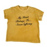 Tiny fit tees naturally dyed by hand with onion skins, each shirt is uniquely varied. Screen printed with black ink. Fits small. Jessie wears a size M.