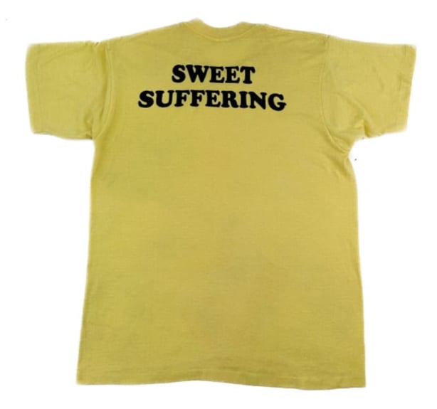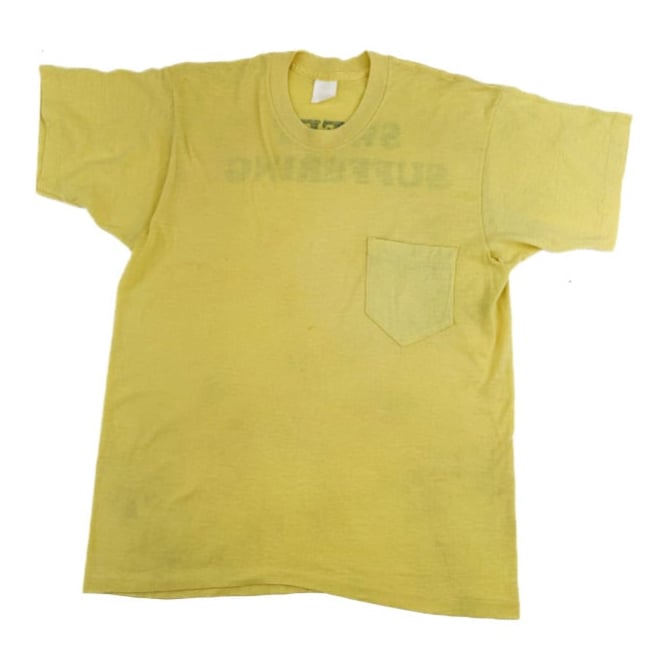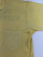Vintage yellow tshirt with pocket detail. Screen printed in black back graphic.